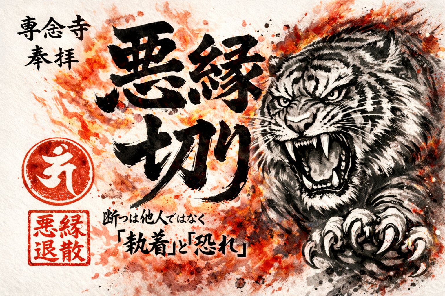 専念寺の毘沙門天(虎の化身)が悪縁切りの祈りを込めた御朱印です。ご祈祷済みです。