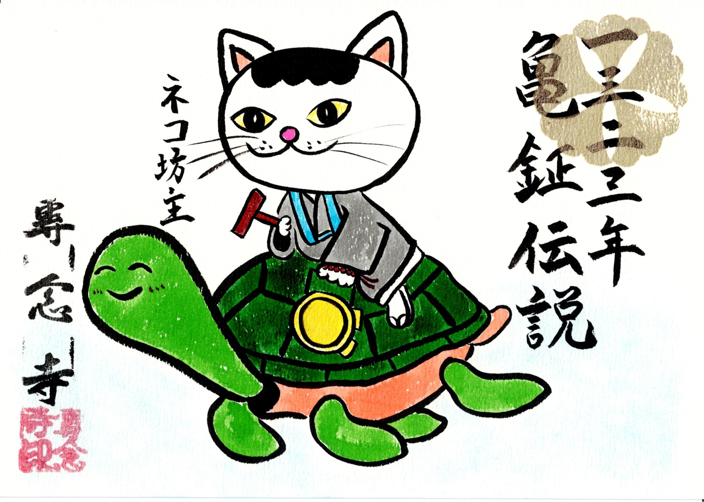 お寺で御朱印帳をいつもお持ちの方にぴったりな御朱印『亀鉦伝説』です。手書きの美しい文字で心を込めてご祈祷させていただき、お渡しいたします。